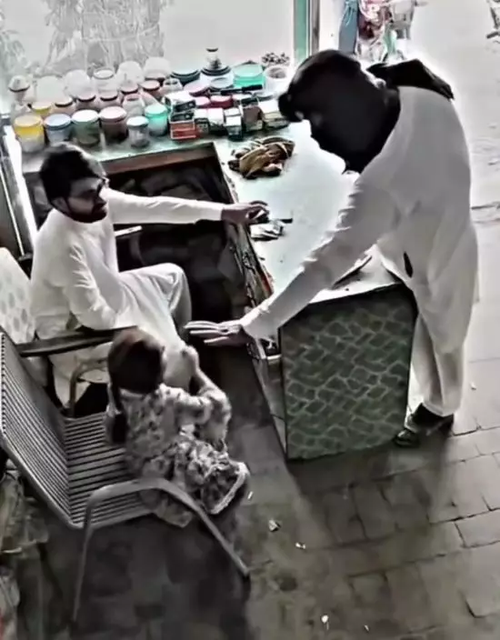 綜合外媒報導,巴基斯坦一名蒙面男子近日闖入雜貨店行劫,威脅店主交出現金及手機,當時店主正與年幼女兒坐在櫃檯後方,由於擔心女兒受傷,唯有配合對方要求。期間,男子還伸手拍打店主的頭部恐嚇。