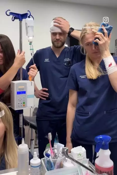 影片可見,小貓右前爪纏著紅色繃帶,模樣看似乖巧,但牠身後的7名獸醫卻各自帶傷,有人手臂纏著繃帶,有人眼角貼上紗布,甚至有人手上仍滲出血跡。反觀這隻體型嬌小的貓貓仍穩坐診療台神情淡定,氣勢十足。牠冷靜的模樣與獸醫們滿臉無奈、身上掛彩的畫面形成鮮明對比。院方事後將影片上載至Instagram上並幽默表示,「這是什麼獅子還是老虎嗎?」。