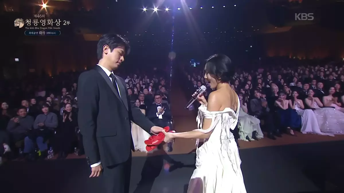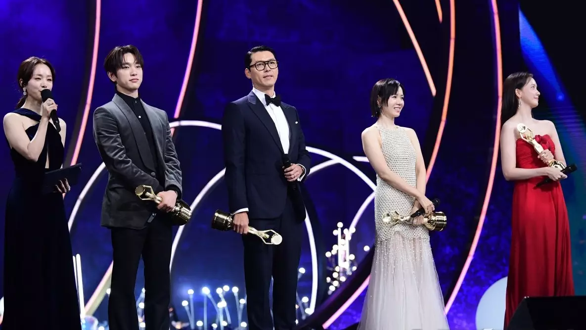 韓國年度頒獎禮《第46屆青龍電影獎》於11月19日晚在首爾汝矣島KBS大廳盛大舉行,由李帝勳與韓志旼連續第二年擔任主持人。當晚最大焦點落在「國民夫妻」玄彬與孫藝珍,兩人不僅攜手奪下「人氣明星獎」,更分別以《哈爾濱》與《選擇有罪》摘下「最佳男主角」與「最佳女主角」,成為青龍電影獎創辦以來首位同時獲封影帝、影后的演員夫妻,現場更甜蜜放閃不斷,堪稱本屆最浪漫、最具電影感的畫面。