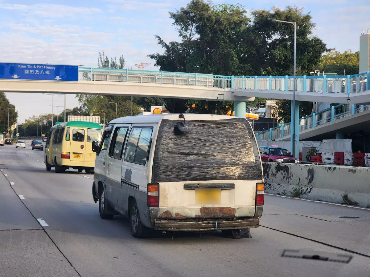 該網友以「末日風格改裝」為題,在fb群組車cam L分享相片,一輛破舊不堪的客貨車出現在本港街頭,車尾門不僅鏽蝕嚴重,更有明顯凹陷 ,後窗玻璃滿佈刮痕,尾軸避震系統亦疑似損壞,整體狀況令人側目。