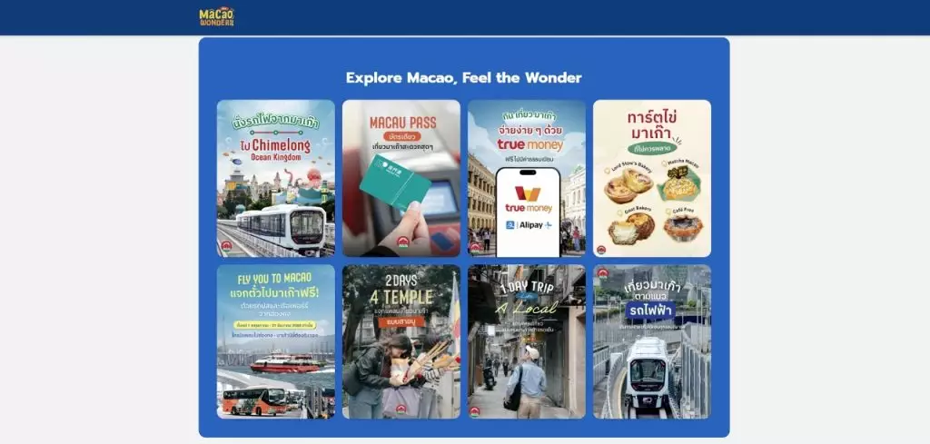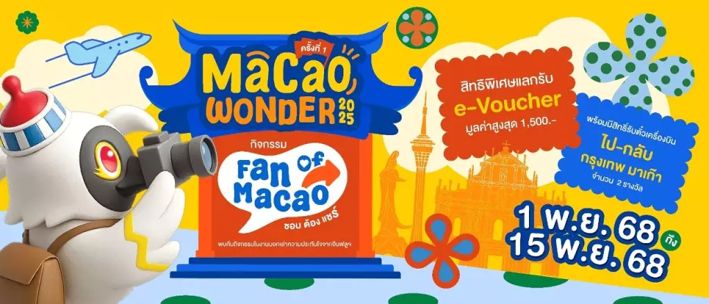 「Macao Wonder Fest 2025」線上促銷網站於活動期內提供多樣澳門優惠旅遊產品,並有現金回贈及抽獎活動,內容包括有泰國旅行社推出10款以上的澳門優惠旅遊產品、五日四夜澳門橫琴一程多站自由行套票、三日兩夜澳門自由行套票及澳門廟宇文化遊等;凡購買特定往返機票、自由行套票或預訂及連續入住兩晚以上澳門酒店,或選購澳門景點門票、自由行旅遊套票及私人接送服務,即可享受現金回贈,優惠名額有限,送完即止。此外,參與網站的 「Fan of Macao」抽獎活動,追蹤旅遊局社交平台並分享遊歷澳門體驗,即有機會贏取曼谷至澳門雙人往返機票。