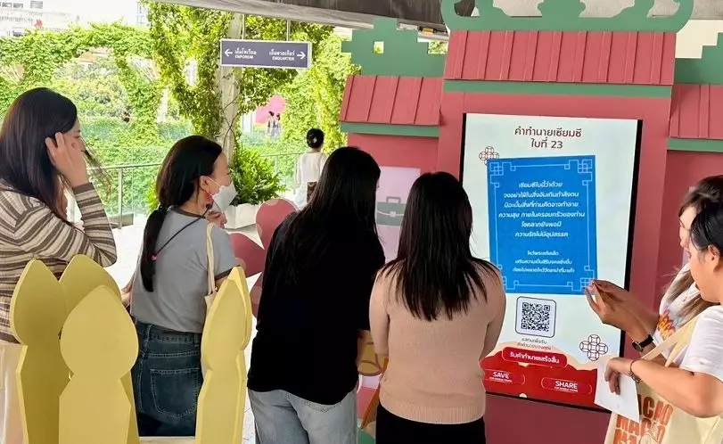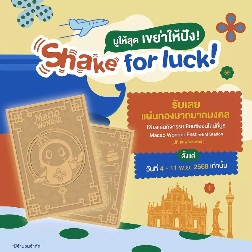 旅遊局看準BTS的龐大客流量,在11月4日至11日選址曼谷著名EM商圈內的BTS澎蓬高架捷運站內設立快閃式攤位,迎合當地人對線下互動體驗的喜好,並引流至線上銷售平台,助力促銷。攤位融入澳門地標及針對當地人重視的廟宇文化的元素,讓參與者有機會通過籤筒互動遊戲,兌換「麥麥」金色福籤卡幸運紀念品。現場特設LED螢幕展示「Macao Wonder Fest 2025」線上促銷網站,期望結合線上線下旅遊推廣,方便即時選購各款澳門優惠旅遊產品。此外,於推廣期內到攤位現場出示有效的曼谷往返澳門機票,即可換領500泰銖現金券。