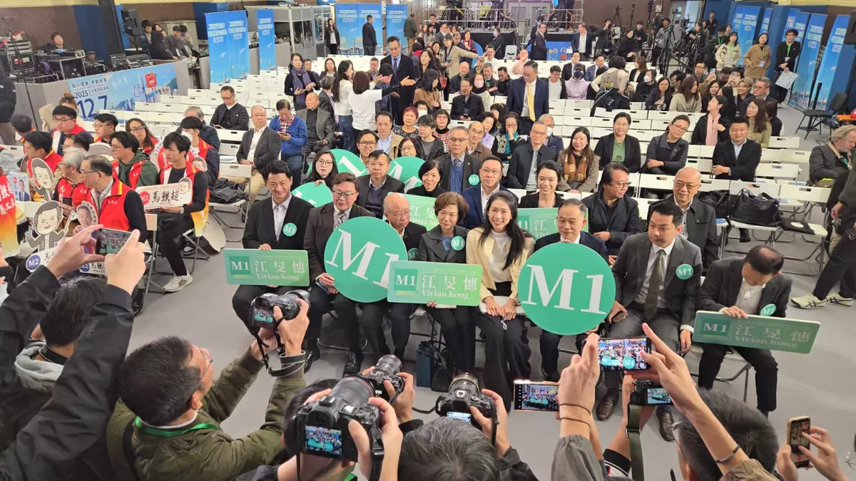 立法會功能界別旅遊界選舉論壇20日下午舉行,1號候選人江旻憓和助選團合照。巴士的報記者攝