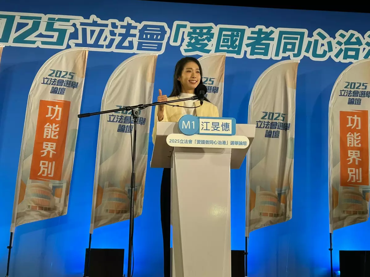 論壇開始,第一部分是介紹政綱。1號江旻憓提到,家人從小就對問她「你玩夠沒有?玩到到處是傷」,她知道家人心痛自己受傷,而自己想要贏一次,但在巴黎奧運之後反思,認為真正的贏,是與香港一起贏,這樣才能最好延續體育精神。她自言秉持服務香港初心,想將奧運冠軍的影響力轉化為建設香港的力量。她希望將體育背景與旅遊結合,如拼搏堅持突破的力量,為旅遊業注入活力。