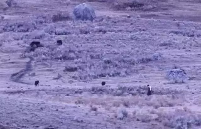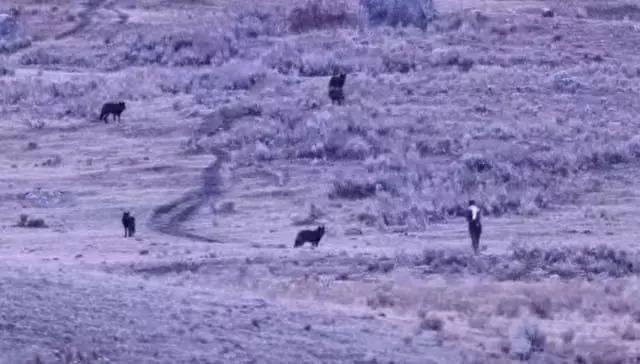 隨後,男子向狼群噴灑疑似「驅熊劑」(bear spray),但狼群非但沒有即時後退,反而繼續逼近,接著人與狼同時消失於山谷之中,只見狼群的黑色尾巴偶爾在山脊上若隱若現。有遊客對此諷刺道:「希望牠們沒咬到他……不過就算咬到了,我也不會太在意。」幸運的是,狼群最終離去,該名男子也從谷中步行返回。