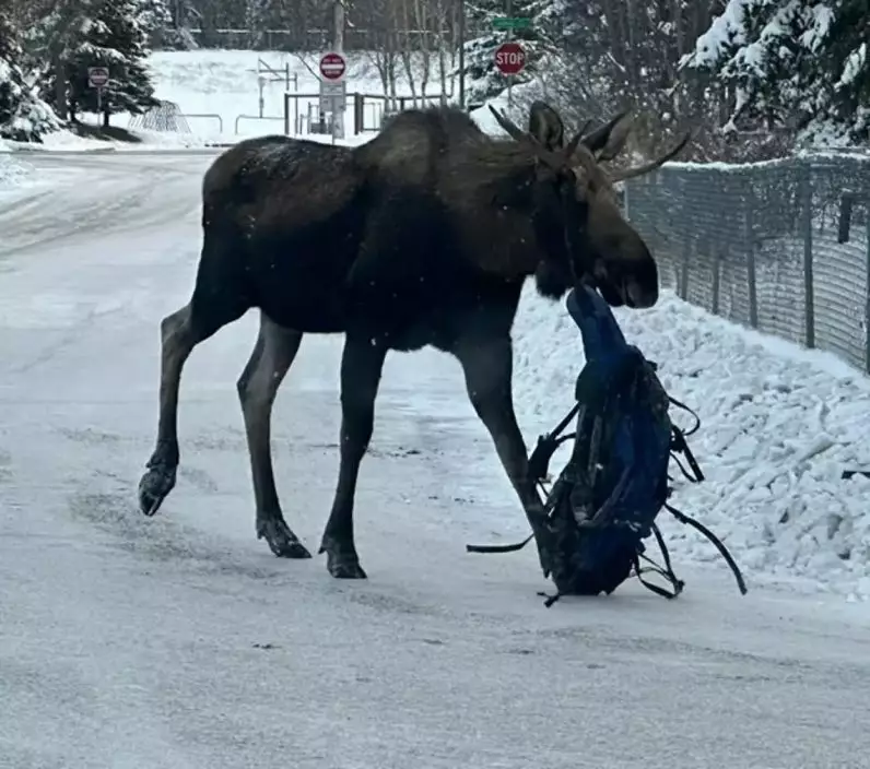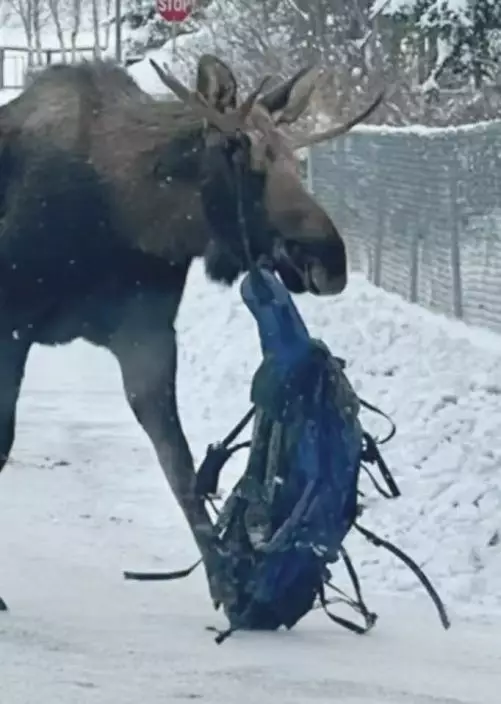 日前,美國阿拉斯加州安克拉治市區出現一幕令人憂心的景象,一頭雄性駝鹿在市區閒逛時,頭部鹿角竟掛著一件「巨大且形狀詭異」的黑色物體,吸引不少途人的目光,有目擊者見狀隨即致電阿拉斯加州漁獵局(ADF&G)求助。