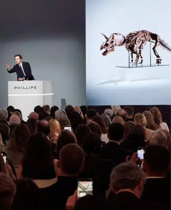 綜合外媒報道,國際拍賣行富藝斯(Phillips)於美東時間11月19日至20日在紐約舉行秋季現代與當代藝術拍賣會,今年也首次將藝術品與自然歷史標本同場呈現。其中最受矚目的焦點拍品是一具距今約6600萬年、產自白堊紀晚期北美洲、並被譽為全球最完整的幼年三角龍化石「Cera」,這也是三角龍化石10多年首度亮相美國拍賣市場,估價約250萬至350萬美元(美元,下同,約1946萬港元至2725萬港元)。