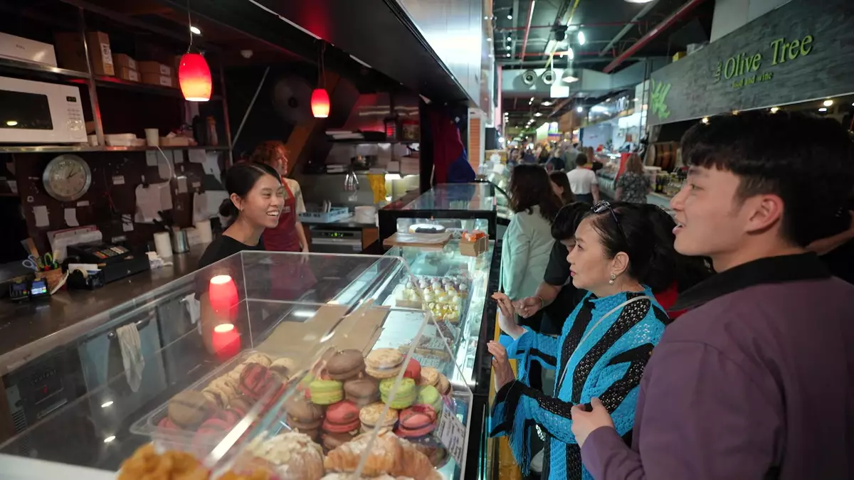 周嘉洛先帶阿姐到Central Market,二人挑戰用有限金額買意粉及蜆。