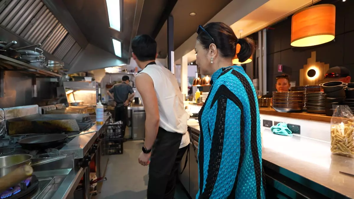 嘉洛另外還帶了阿姐到Central Market試飲試食,期間有Cheesecake店員認出Liza姐,並笑言是劇集《我的野蠻奶奶》粉絲,阿姐人氣果然遠至海外。另二人又按製作組要求、挑戰以有限金額買意粉及活蜆煮意粉,並由臨急抱佛腳上了兩堂事前進修堂的嘉洛擔任「大廚」。結果嘉洛不但第一關開火已「卡關」,更將原本好地地的白汁意粉,煮成地獄料理「豉椒意粉」,令阿姐大感「驚」艷。