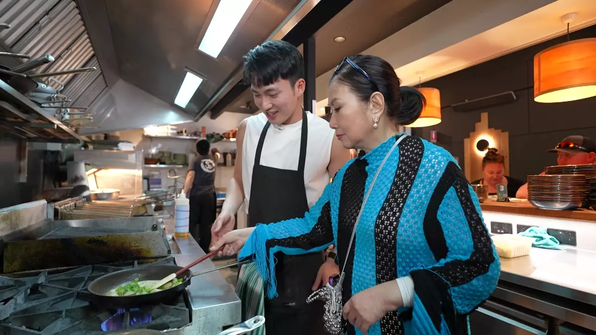今(2日)、明(3日)兩晚的《帶阿姐看世界》,繼續是首站澳洲及「澳洲站旅伴」周嘉洛。今晚(2日)播出的第三集,阿姐與周嘉洛繼續行程豐富,除了走入Central Market玩限額買食材、到訪嘉洛很想回味的唐人街燒臘店、兼到Gilles at The Grounds市集Shopping,今集焦點,絕對是嘉洛帶住「畏高」阿姐,登上Adelaide Oval 50米高空的橢圓球場體驗Roof Climb,獻出人生第一次Roof Climb;眼前阿姐埋位前後不斷抖大氣,嘉洛仔馬上再發揮「暖男」本色,幫阿姐體貼穿上保護裝備之餘,還不忘為阿姐打氣:「唔使擔心呀阿姐,我會一路喺你後面。」