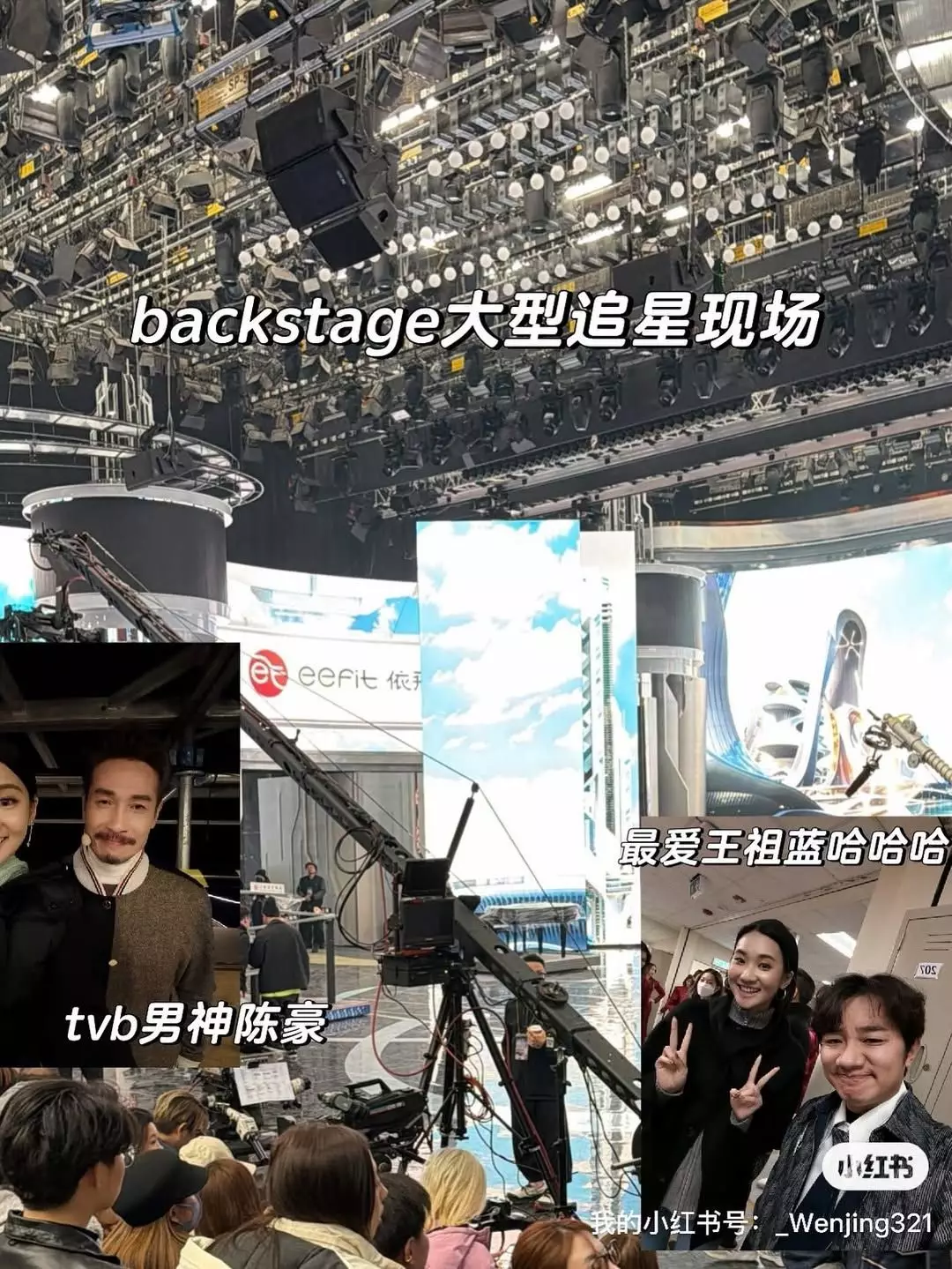 袁文靜又晒出多張台慶當晚的照片,可見以一身水藍色禮服性感上陣的她,前一秒擺出靚靚Pose在台慶佈景板前拍照留念,下一秒即被凍到縮埋,雙手緊抱自己,非常可愛!她又趁機與多位藝人集郵,笑言是「大型追星現場」!
