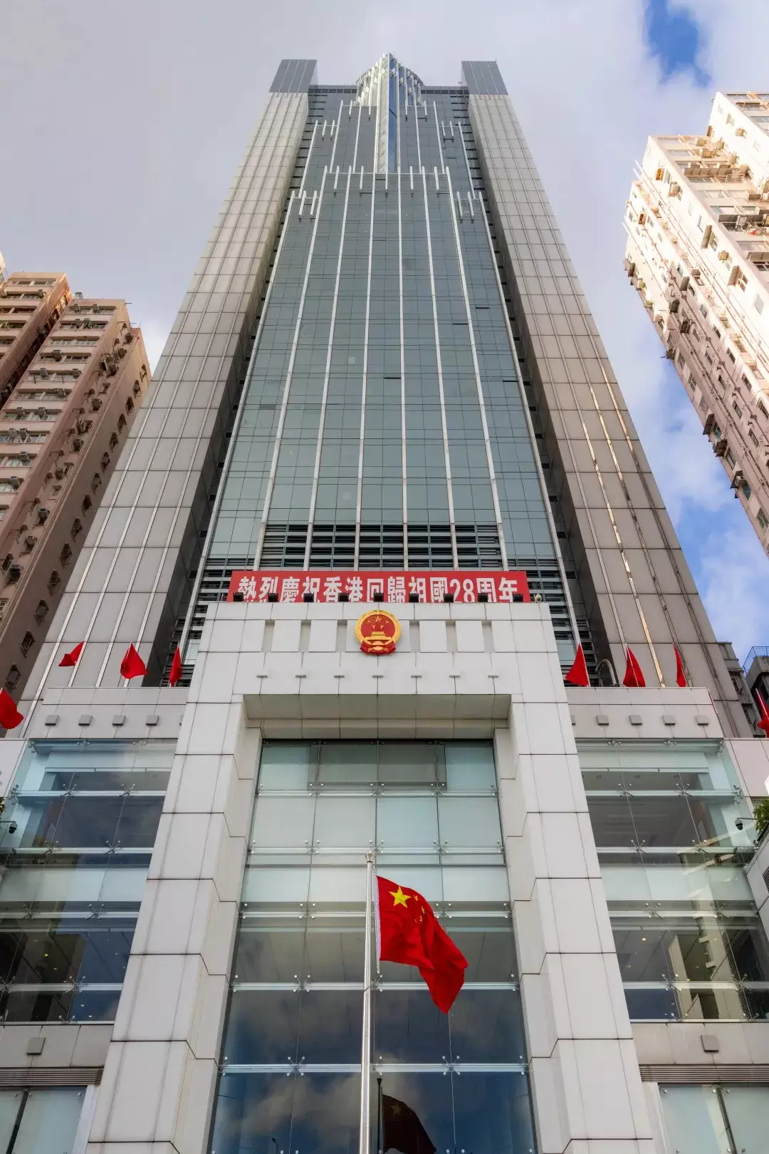 上午8時,中聯辦副主任劉光源、羅永綱、祁斌、孫尚武和秘書長王松苗,在港協助展開救災工作的中央港澳辦工作小組成員、中聯辦幹部職工代表,在辦公大樓前肅立。國旗升到旗桿頂部後,再徐徐降下半旗,全體人員默哀3分鐘。