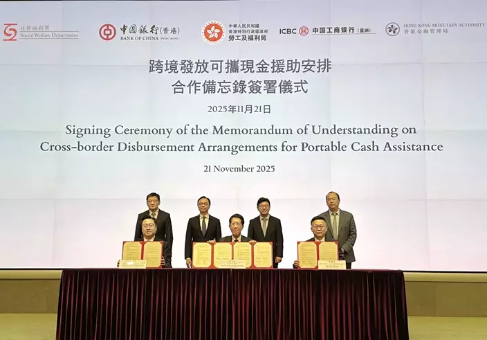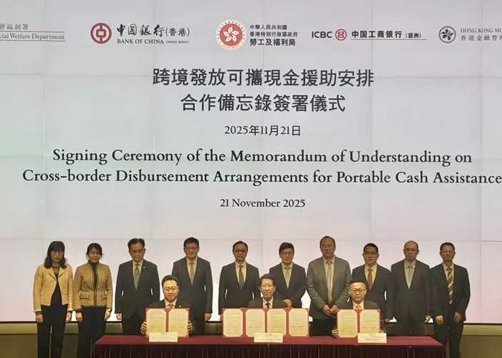 中國工商銀行(亞洲)有限公司與社會福利署簽署《關於推展跨境發放可攜現金援助安排合作備忘錄》,攜手為於廣東及福建省養老並領取政府可攜現金援助的長者提供便利,全力支持《行政長官2025年施政報告》中的優化跨境養老安排。