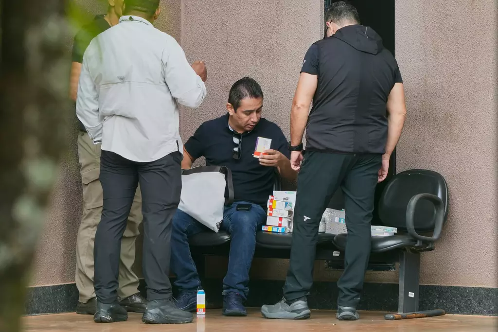 博爾索納羅的家人在警察總部整理藥物。AP圖片