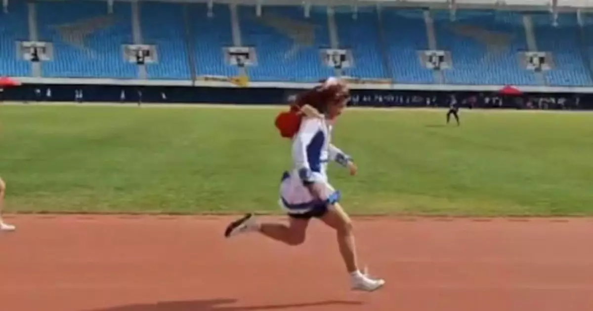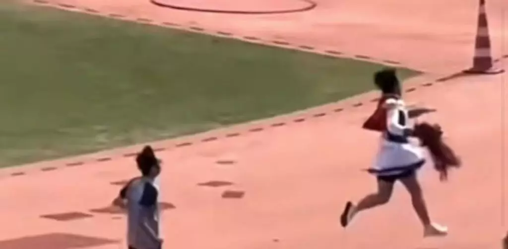 男學生校運會戴假髮著裙跑步奪冠卻遭學校指不符體育精神取消成績。影片截圖