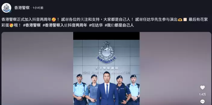 見慣大場面的任達華起身後很快整理好狀態,轉身與司儀比V合照,順利化解尷尬,不過一旁的太太琦琦被嚇到花容失色,還好最終見任達華平安無事,有驚無險。