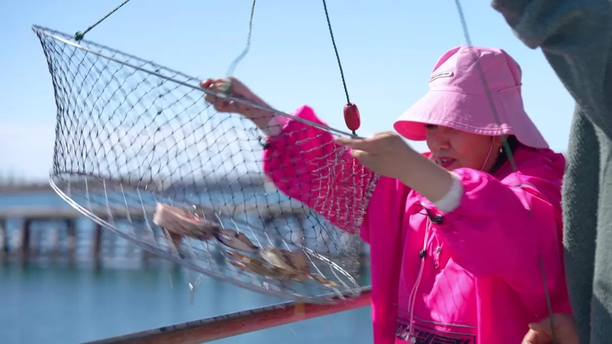 阿姐體驗釣蟹時,好似小朋友咁開心。