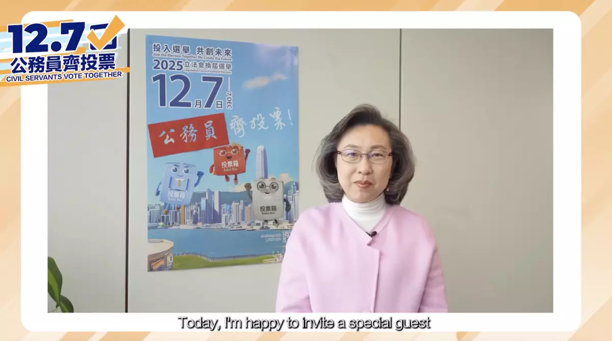 公務員事務局局長楊何蓓茵繼續以短片呼籲選民在12月7日立法會選舉投票。