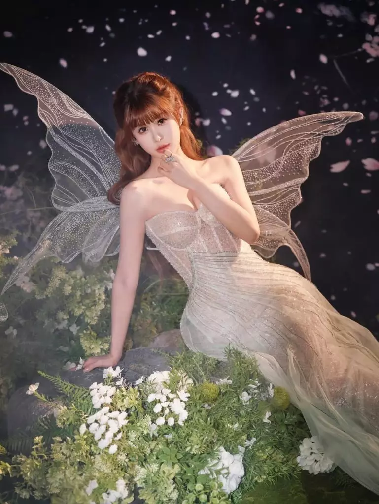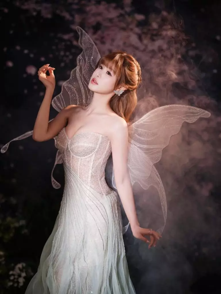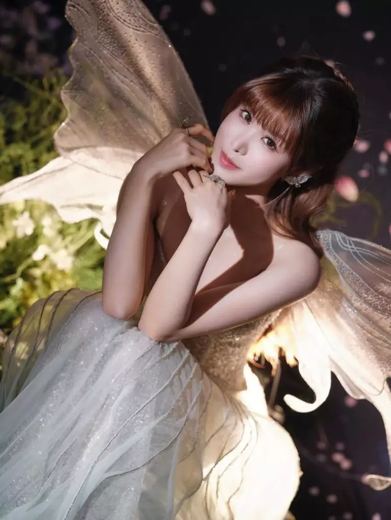 相片中的古佩玲一低胸透視長裙示人,配上一對蝴蝶翅膀,古佩玲化身蝴蝶仙子,可愛又不失性感,連網友亦忍不住大讚仙女仙子!