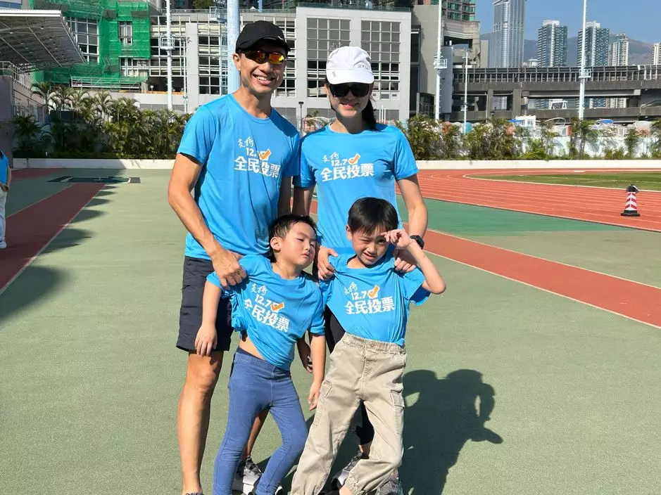 市民黃先生和太太、孩子一齊跑。巴士的報記者攝