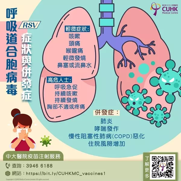 呼吸道合胞病毒 (RSV) 症狀與併發症。香港中文大學醫院網站圖片