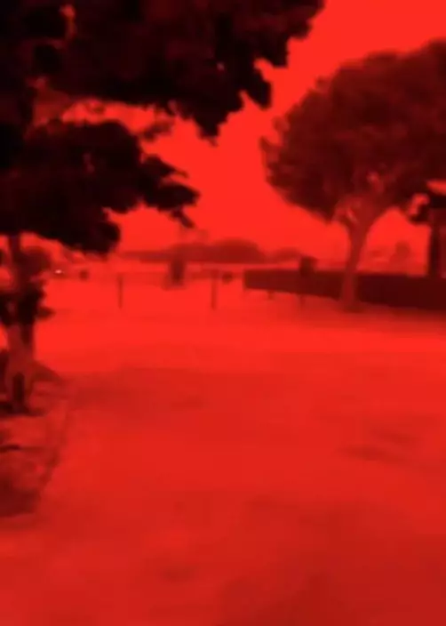 受事件影響,整個地區猶如被紅色吞噬,能見度一度急降至接近零,空氣質素也明顯惡化,部分地區甚至有人出現呼吸困難情況,天空則持續瀰漫不尋常的紅橙色光芒。