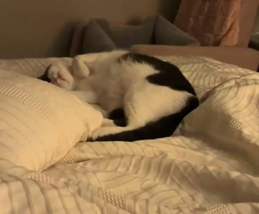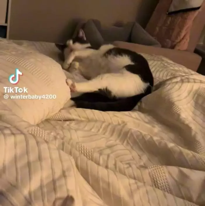 飼主指出,躺在旁邊的寵物貓每次聽見嬰兒哭聲時便會立即作出反應,彷彿回到過去照顧自己幼貓的狀態般,翻身露出肚皮,像是在幫忙「餵奶」安撫嬰兒,令人備感窩心。