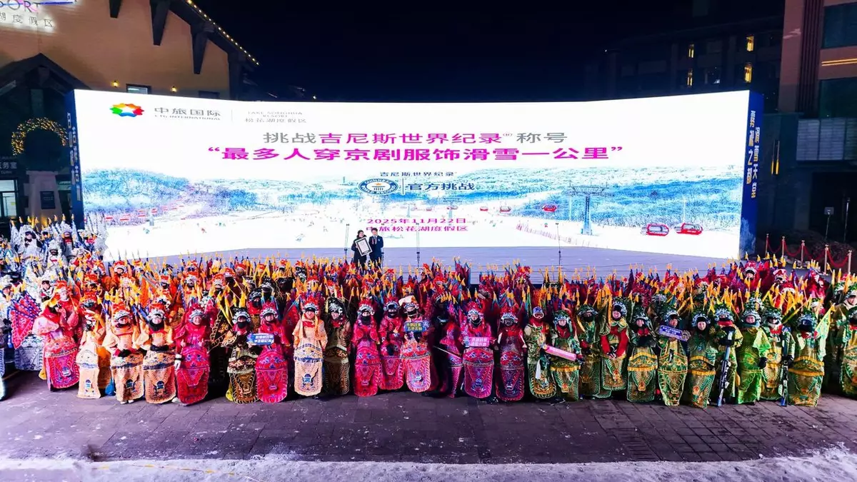 活動期間,中旅松花湖度假區成功挑戰「最多人穿京劇服飾滑雪一公里」健力士世界紀錄,為新雪季增添重磅亮點。