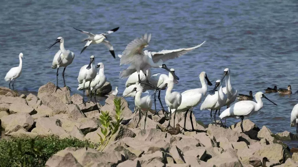 來澳度冬的黑臉琵鷺在生態區內活動。澳門政府新聞局圖片