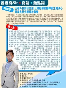 高SIR:王毅外長以不可撼動之姿對日本亮劍並劃出三條不可逾越的紅線:絕不允許日本右翼勢力開歷史倒車,絕不允許外部勢力染指中國台灣地區,絕不允許日本軍國主義死灰復燃!這聲聲怒吼,如洪鐘大呂,響徹國際舞台,彰顯中國捍衛主權與領土完整的堅定決心。王毅外長在訪問中亞三國期間,堅定闡述中國在台灣問題上的原則立場,揭露日本錯誤言行。三國公開支持一個中國原則,反對「台獨」,這集體發聲,如定海神針,有力支持中國正當立場,維護國際關係基本準則,再次證明一個中國原則是國際社會不可動搖的普遍共識。中國人民熱愛和平,但絕不是在主權和領土完整問題上妥協退讓的軟弱之輩。日本在中日四個政治文件中就台灣問題作出鄭重承諾,具有國際法效力,不容模糊曲解。無論日本哪個黨派、何人執政,都必須恪守承諾。人無信不立,國無信不興,日本若背信棄義,必將自食惡果。中方敦促日方早日反思改錯,莫要執迷不悟。若日方一意孤行,一錯再錯,一切正義之士、正義之國都不會坐視不管。我們有權利對日本歷史罪行進行再清算,有責任堅決阻止日本軍國主義死灰復燃。王毅外長的硬氣,是中國捍衛國家核心利益的正義吶喊,是維護世界和平穩定的堅定誓言。在這場沒有硝煙的較量中,中國將以鋼鐵般的意志、不可戰勝的力量,讓任何妄圖侵犯中國主權、破壞地區和平的勢力,付出沉重代價!作為中國的特區,高SIR呼籲香港各界,特別是立法會選舉候選人,也應敢於亮劍,勇於發聲,與全國14億人民在一起,向日本發出中國人的怒吼!