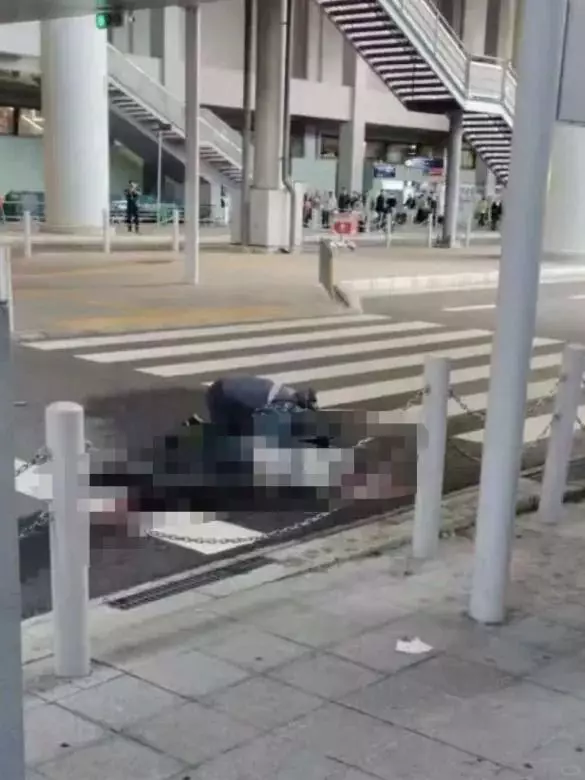 傳媒報道,事發在當地下午2時30分左右,警方報指,關西機場第一航站樓四層(三樓)連接道路處有人「雙腳伸直坐在路邊護護欄上」,該處為的士及巴士下車處。