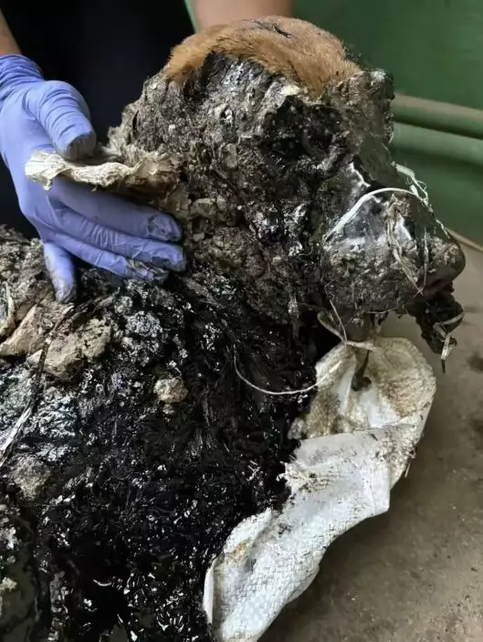 救援人員趕赴現場時驚見小狗倒臥在地上,全身被凝固瀝青覆蓋,身體因重量壓迫幾乎無法呼吸,鼻孔和眼睛也被堵塞,生死未卜,宛如一尊被「封印」的黑色石像般。救援人員露安娜(Luana)憶述,小狗當時完全不明白發生何事,只能以最後力氣勉強撐著。