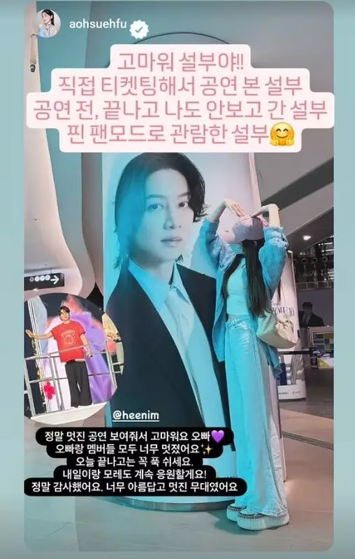 郭雪芙也很快轉發金希澈的帖文,並用韓文回應:「Oppa,見到你真的很高興,雖然很久沒見,但還是跟以前一樣讓人感到溫暖舒服,心情特別好。」她還說,能再次看到希澈在舞台上閃閃發光的模樣,自己感動得不得了,並祝福彼此都能健康幸福地走下去。