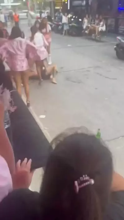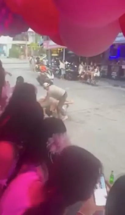 3名男子在泰國酒吧街爆發肢體爭執期間,突遭數名女子加入圍毆,最終因寡不敵眾被壓制。