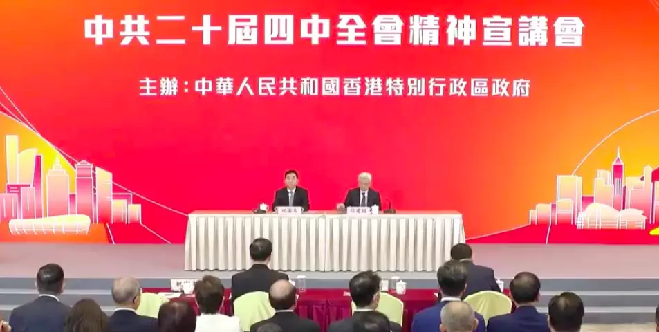 特區政府在政府總部舉行宣講會,向社會各界宣講中共二十屆四中全會精神,並由中央宣講團兩名成員,中國科學院院長、黨組書記侯建國,及中央財經委員會辦公室副主任、中央農村工作領導小組辦公室副主任祝衛東,宣講相關精神。