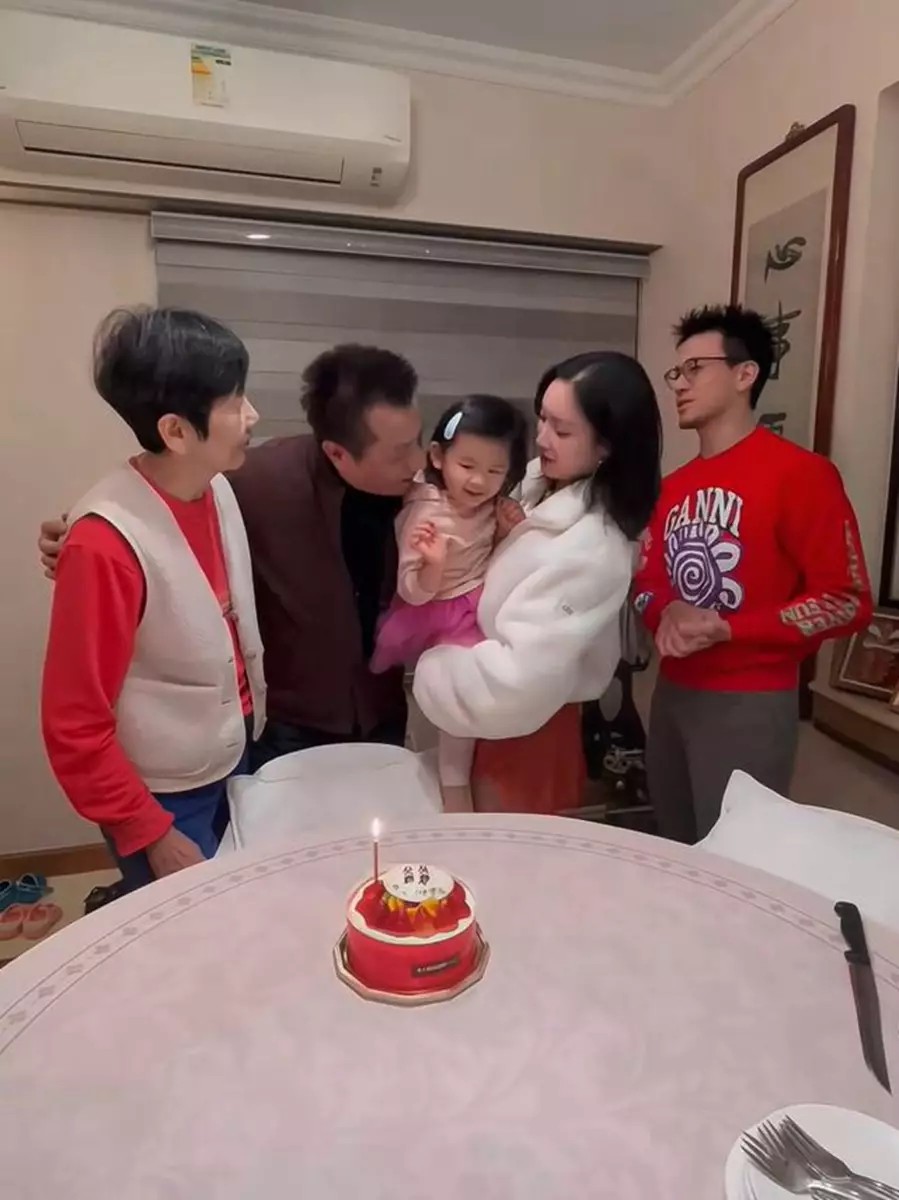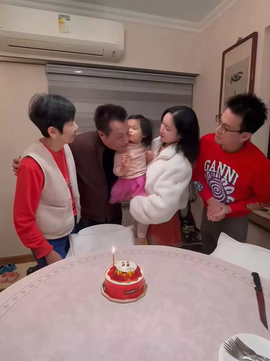 從林佑蔚分享的照片及影片可見,一家人打扮都以紅色系為主,相當喜氣洋洋,雖然沒有大排筵席慶,但一家人齊齊整整在家中切蛋糕已經好溫馨,石修更被3歲的孫女Luna冧爆!Luna在影片中一邊拍手一邊唱「happy birthday to 爺爺」,唱完歌原本想錫爺爺一啖,但突然怕羞,還用兩隻小手掩面,於是爺爺問:「你唔錫我一啖先咩?」Luna即嘟嘴錫爺爺塊臉一啖,然後又再怕羞攬實媽媽,表現超級可愛!之後,石修還陪孫女去玩滑板車,又與孫女手拖手仔行入停車場,完全是有孫女萬事足!