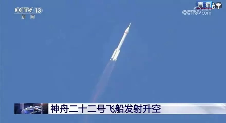 神舟二十二號升空。央視截圖
