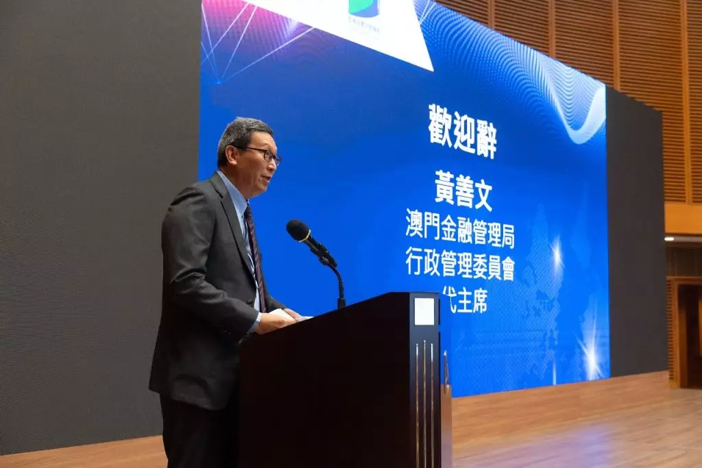 澳門金融管理局行政管理委員會代主席黃善文致辭。澳門政府新聞局圖片