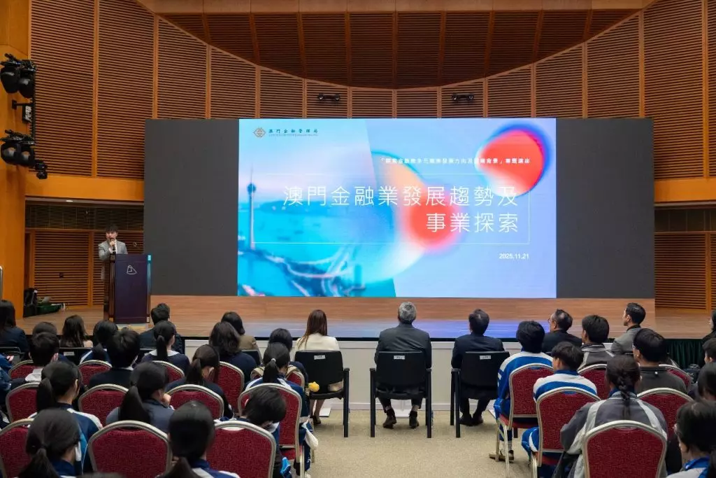為讓本澳高中學生能夠更了解澳門現代金融業的發展趨勢和就業前景,輔助他們更好地規劃升學和職業發展路向,由澳門金融管理局主辦(下稱「金管局」)、教育及青年發展局(下稱「教青局」)協辦的兩場「探索金融業多元職業發展方向及就業前景」專題講座於日前在澳門科學館會議廳順利舉行,兩場活動共吸引本澳14所學校約520名高中學生報名參與。