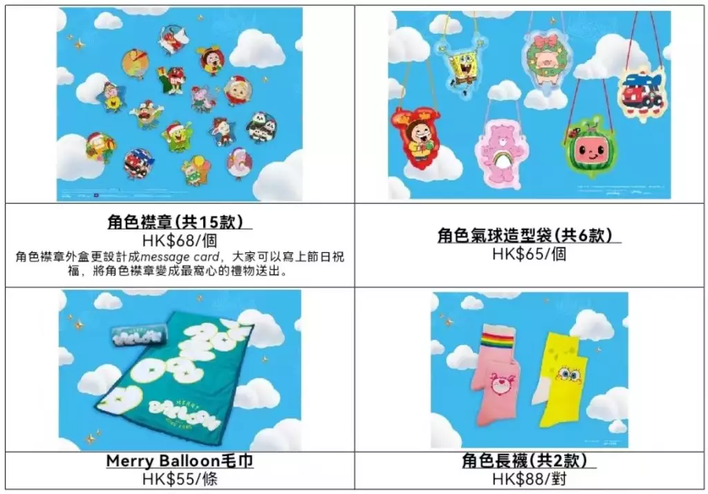 「Merry Balloon 角色襟章及隨行吊牌套裝」換購價HK$68/套