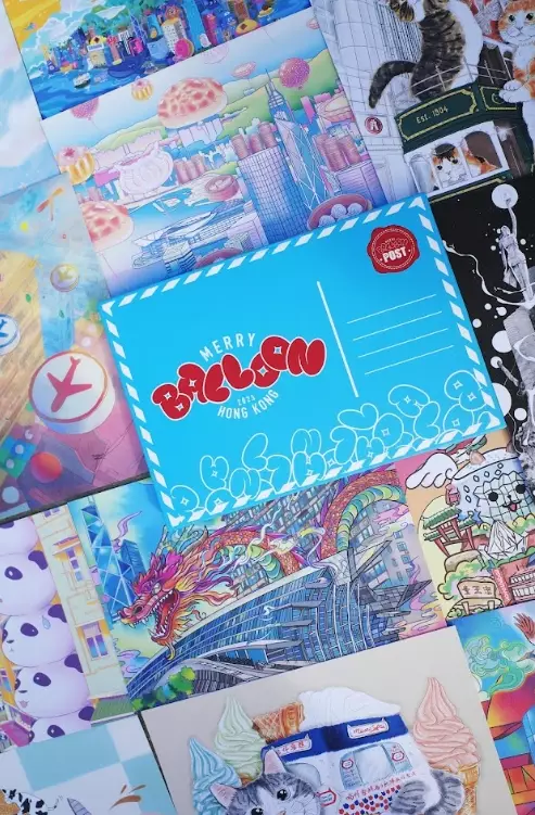 大會亦與「香港插畫師協會」合作,邀請多位本地插畫師創作出一套16張富有香港特色的明信片,於Klook https://s.klook.com/merryballoon公開發售(每套HK$38)。市民及遊客可以走訪9個香港熱點集印,每張明信片配對指定印章,每集齊8個印章後即可以HK$68換購「Merry Balloon Hong Kong」限定角色襟章及隨行吊牌套裝一套*。大家即日可預購明信片,並於11月24日起於「Merry Balloon Hong Kong」期間限定店換領處兌換,即可展開旅程!