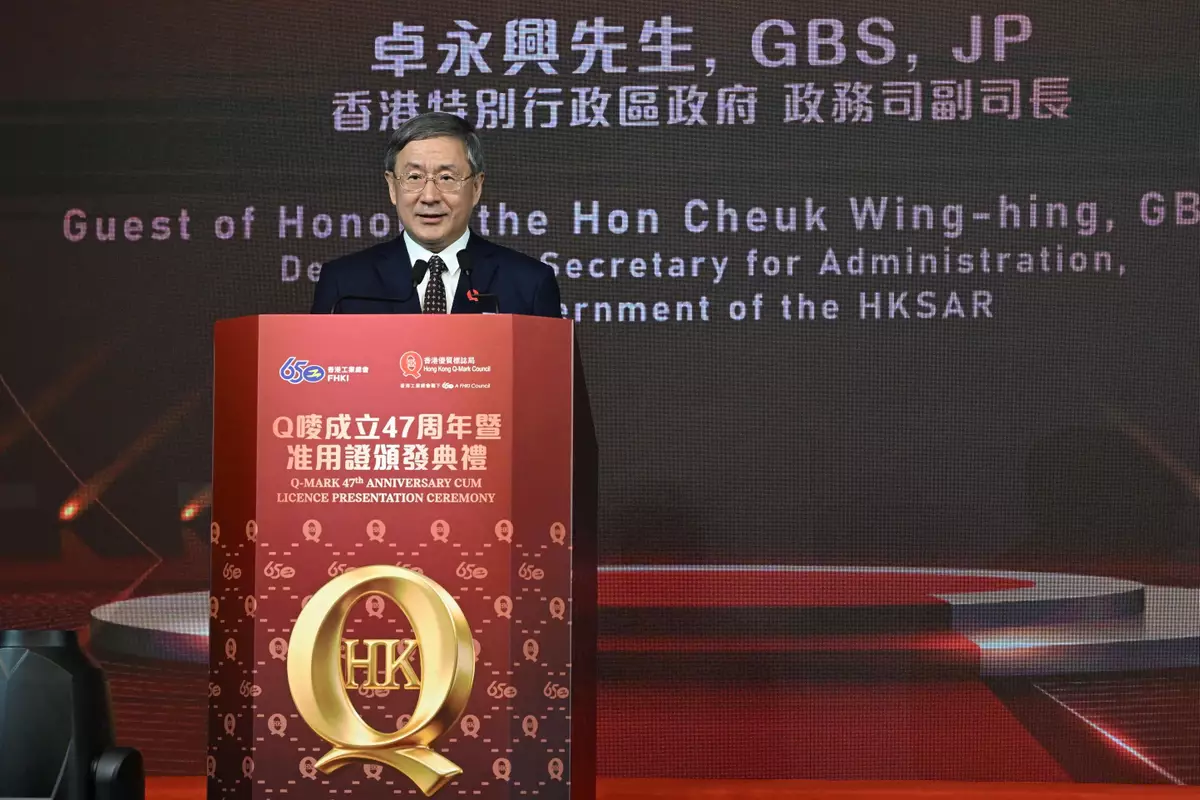卓永興出席「Q嘜」成立47周年活動致辭。政府新聞處圖片
