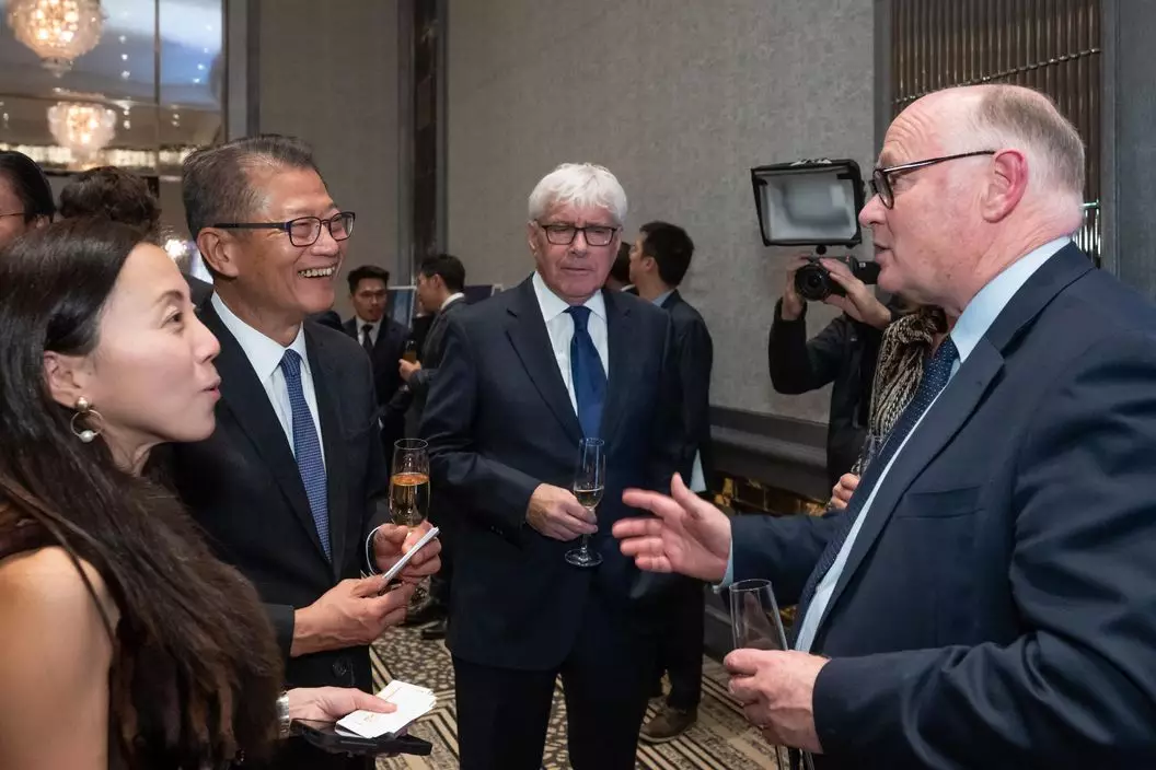 陳茂波之後出席由香港貿發局舉辦的「香港晚宴」並發表主題演講,向英國的政商界介紹香港的最新情況和發展機遇。陳茂波強調「一國兩制」繼續是香港繁榮穩定的基石,法治和普通法制度依然穩健,廣獲國際認同。他指出,過去一年,全球資金持續流入、多國企業持續擴展在港業務,反映國際社會對香港營商環境的信心。