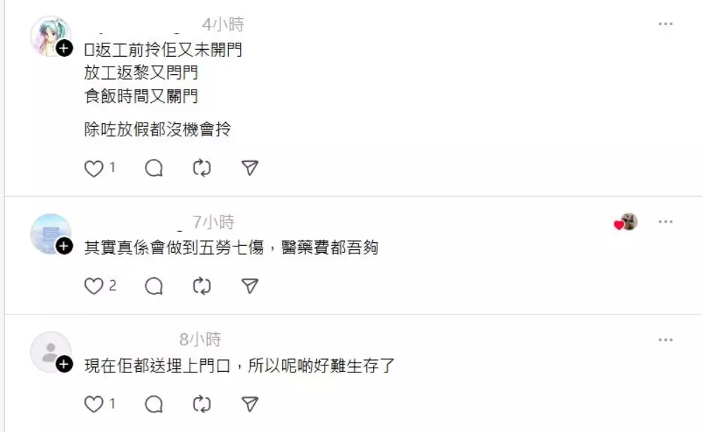 不少網民慨嘆「做自取點其實即係做倉務」。「任何人都可以開到店同做到,所以一定係出好低價」,而且需要好大的體力勞動「做義工苦力,仲可能會傷腰,早執早著」。