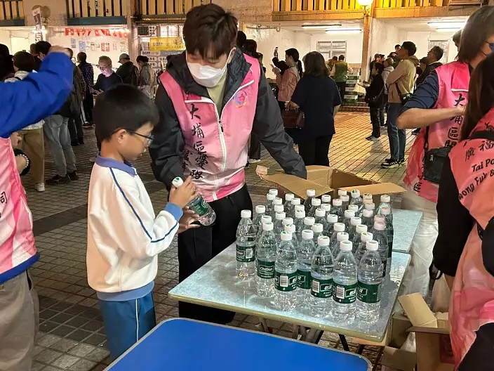 因應大埔民政事務處已開放廣福社區會堂和東昌街社區會堂作臨時庇護中心,給有需要的市民使用,華潤飲料亦已把首批一萬多樽水送達現場。