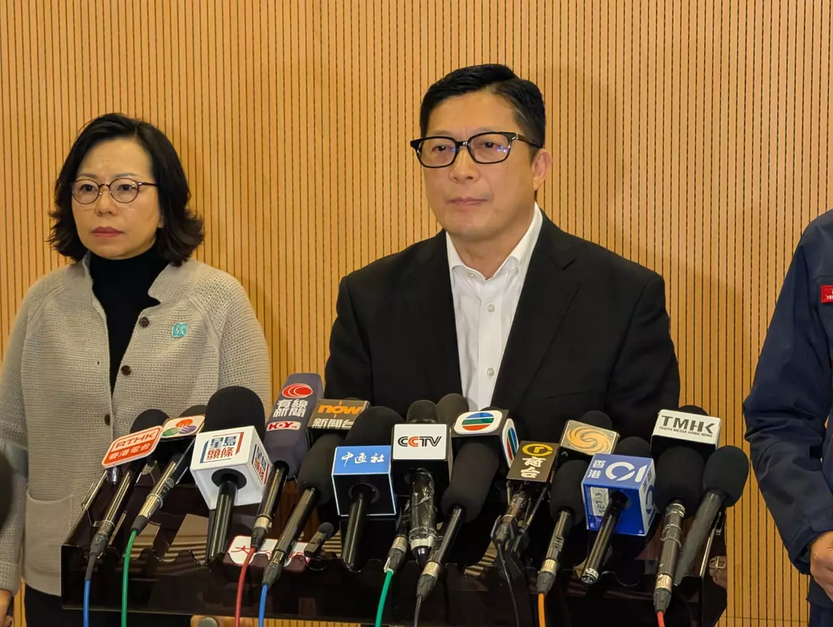 行政長官李家超和多名局長到威爾斯親王醫院探望傷者,向傳媒講述大埔宏福苑五級火最新情況。巴士的報記者攝
