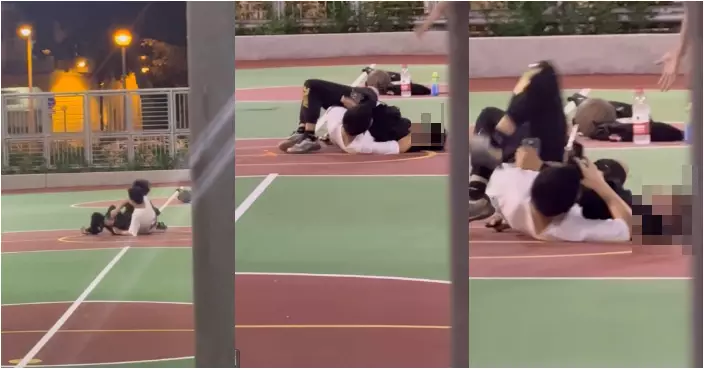 社交平台流傳一段影片,顯示兩名少年在秀茂坪一個籃球場持武器對峙。網上影片截圖