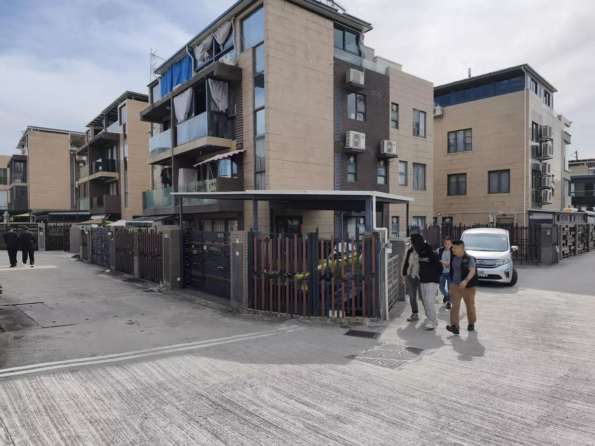 警方下午於另一名涉案何姓男子元朗橫洲蝦尾新村住所進行搜證。巴士的報記者攝