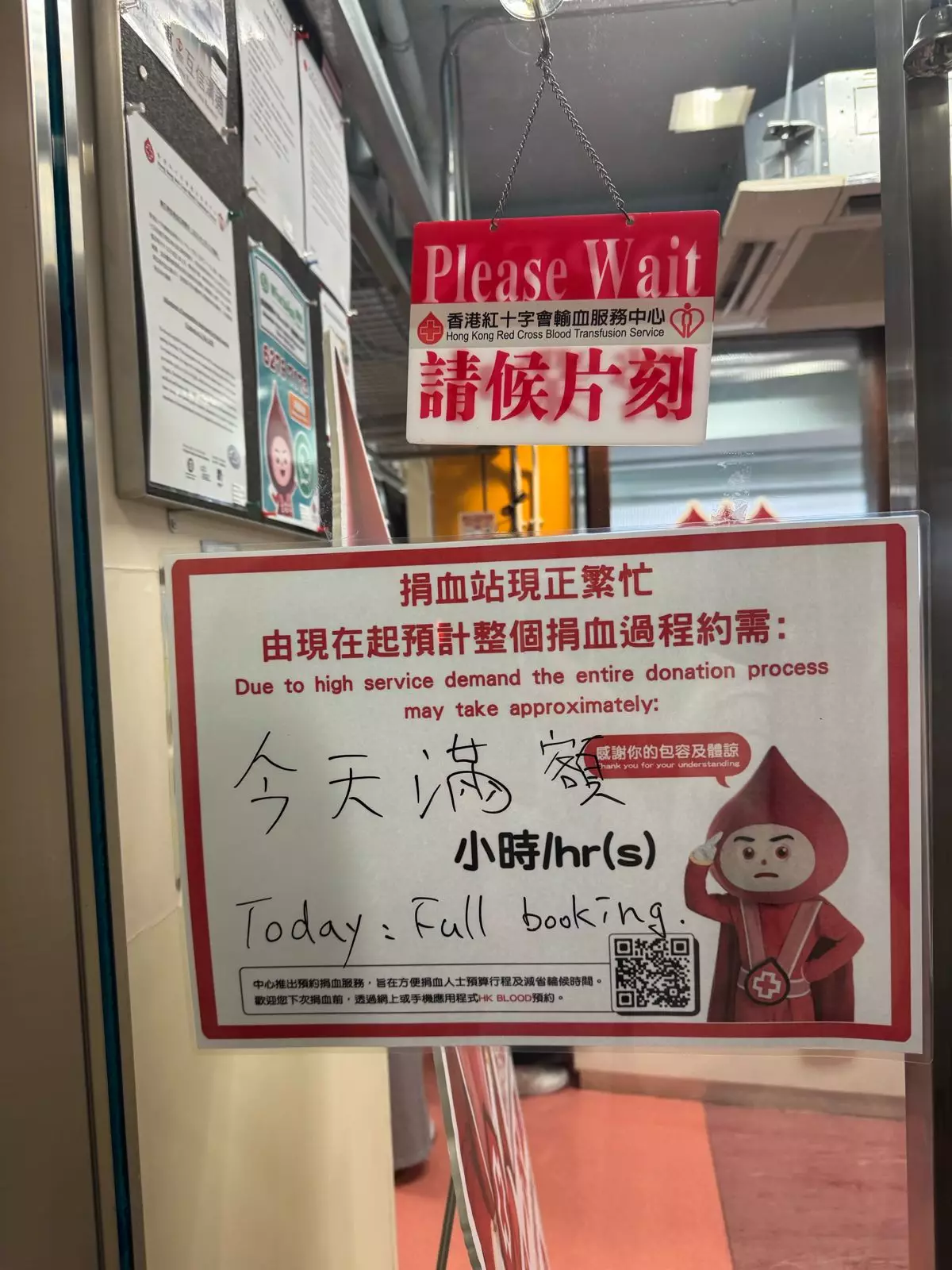 據了解,大埔太和路捐血車、銅鑼灣捐血站、灣仔捐血站及觀塘捐血站的預約名額均已爆 滿,有捐血者轉述捐血站職員表示,「好多中心若現場等候 都需時2-3小時」,建議市民先預約及留意最新消息。