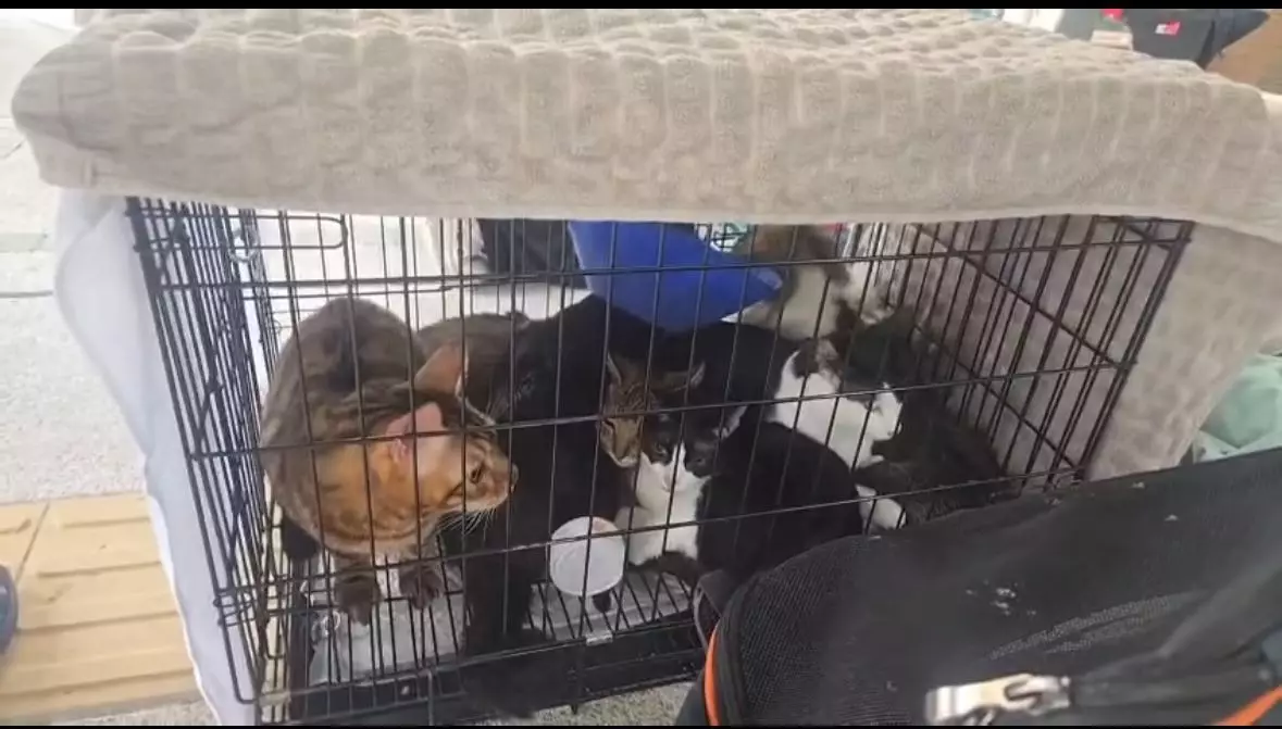 有網民在Threads發文感謝該消防員,並上傳他滿頭大汗蹲坐休息的照片,寫道:「宏建(閣)9貓1狗,都係呢位消防員救出」。照片中的消防員噶剛剛完成救援工作,蹲坐地上喘息,他手持一瓶水解渴,多隻獲救貓隻被安頓在籠內。
